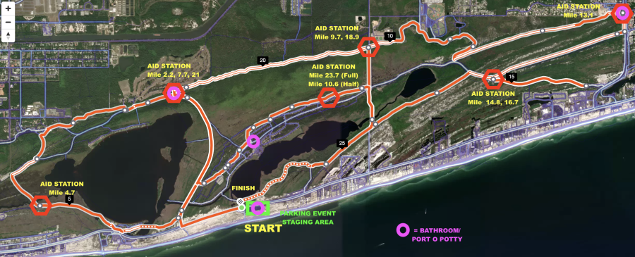 The course was very interesting. Some of it was Meh. Some of it was in parks and nice. Some of it was on wooden boardwalk type of bridges which I do NOT enjoy. The end was again Meh as we ran through an RV park. The thing that struck me about this course though was that it seemed very circular. We did loops here and there and saw the same aid station a few times in multiple directions.